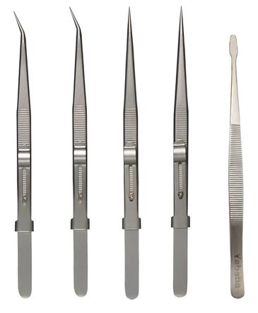 Is made of industrial grade material, high quality stainless steel. The sturdy precision tips, which can easily grab hair, are very convenient for picking up small parts from your workbench and improve work efficiency.The set includes(2 x curved tweezers, 2 straight tweezers, 1 x Flat Tweezers).